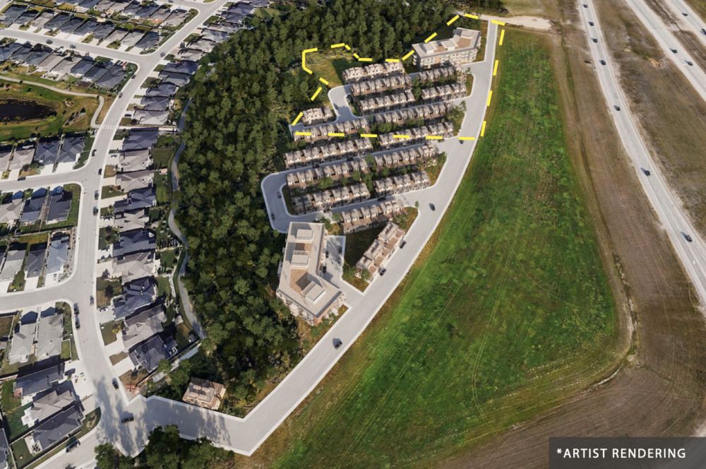 This plot of land has been re-zoned to DC1 (Medium Density Residential zoning for up to 175 units). Please note that the maximum height for future apartment buildings will be 4 storeys. Out of the total area of 5.4 acres, the usable space consists of 3.9 acres.